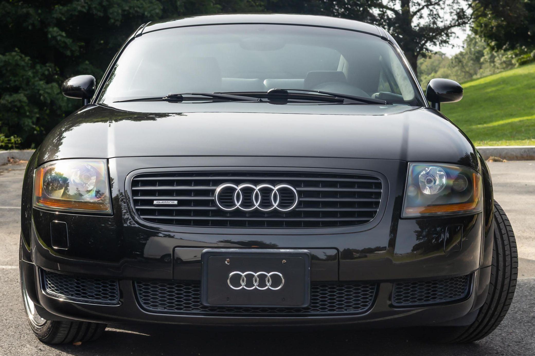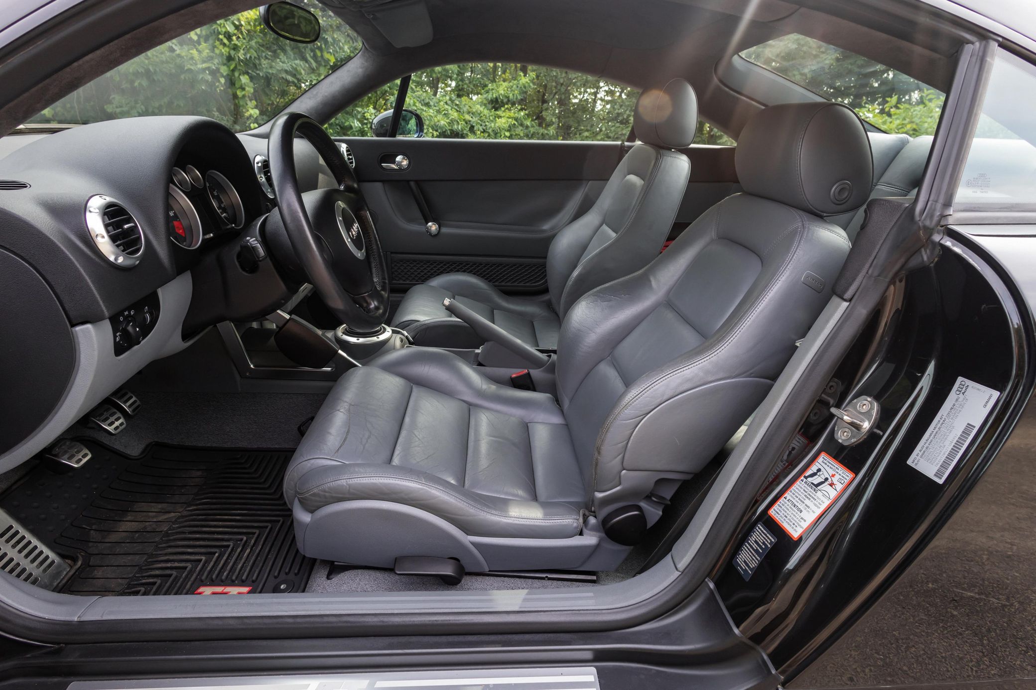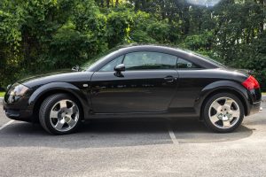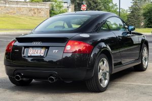 THIS… is a 2001 Audi TT Quattro Coupe, finished in Raven Black Pearl Effect with an Aviator Gray interior. This TT features the desirable 6-speed manual transmission. The attached Carfax vehicle history report indicates no mileage discrepancies in this TT’s past; it also shows registration to one owner since new. According to the window sticker provided in the gallery, notable factory equipment includes the Premium and Audio packages, a rear spoiler, leather upholstery, and cruise control. Notable modifications reported by the seller include a Ramair foam induction intake, a Borla cat-back exhaust, a Unitronic Stage 2 ECU tune, and an Alcantara headliner. The first-generation Audi TT was introduced in 1998, with the Quattro Coupe variant following in 2000. With its distinctive design and all-wheel-drive performance, the TT Quattro Coupe quickly became a favorite among car enthusiasts. Its combination of sporty performance, luxury features, and unique styling has ensured its status as a modern classic. Power comes from a 1.8-liter turbocharged straight-4, rated at 225 horsepower and 207 lb-ft of torque in stock form. Due to the modifications performed to this TT, it may produce more power, but a dyno sheet was not provided to confirm. Output is sent to all four wheels via a 6-speed manual transmission.